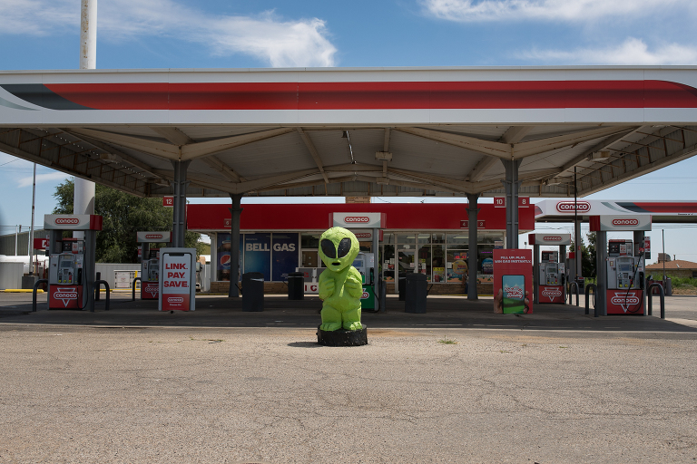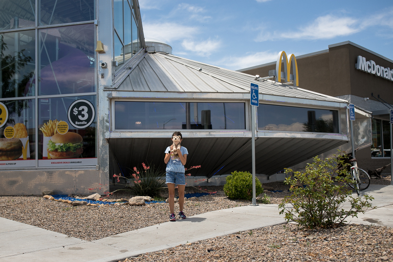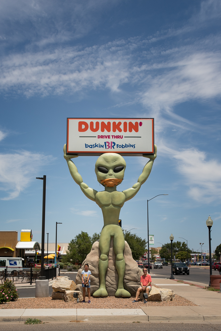 On the road from Carlsbad to White Sands we passed through Roswell and well, had to stop for lunch and take a few photos of some aliens! There’s even a McDonald’s that has a space ship theme to it. And the big alien at the Dunkin’ Donuts was doing a good job wearing its mask.