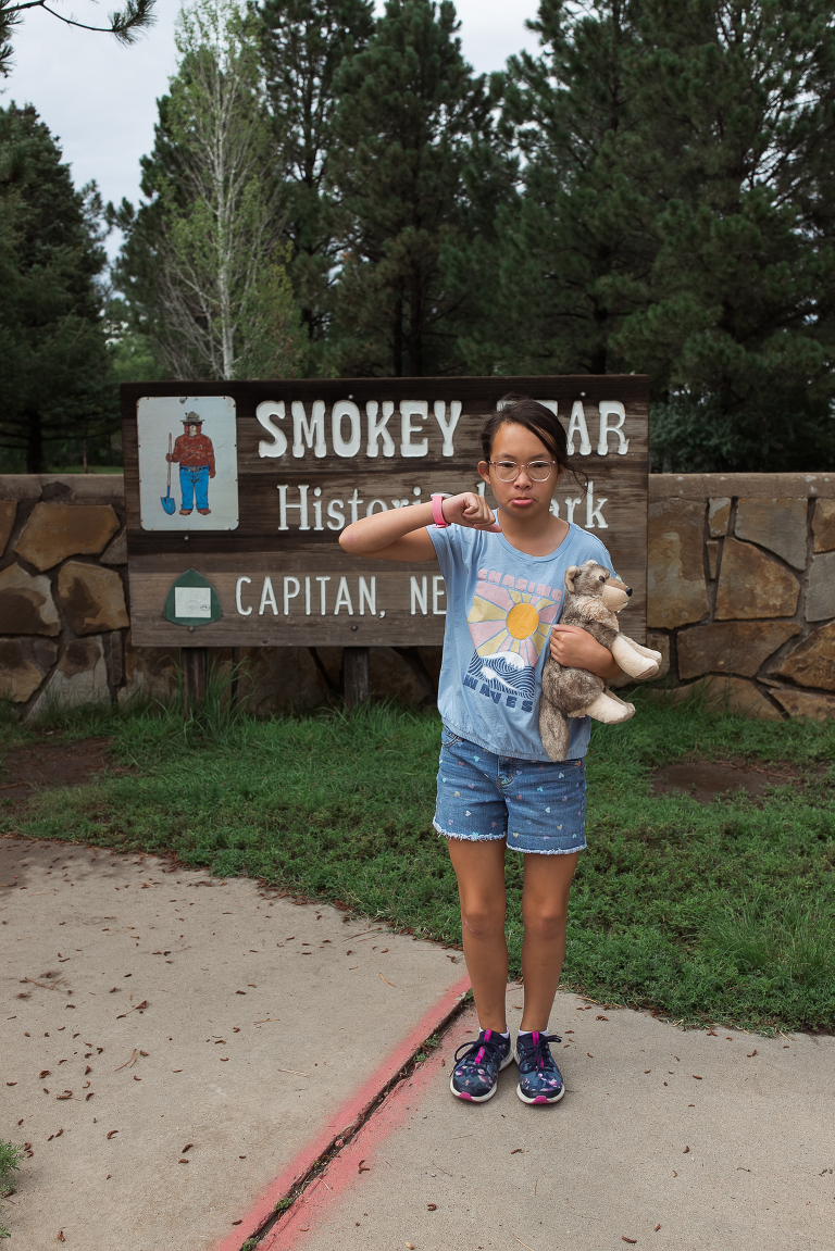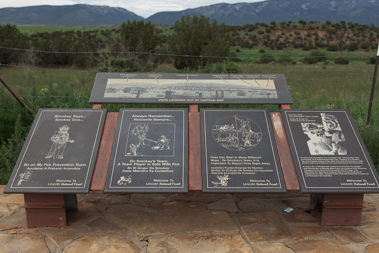 It’s always fun to see something unexpected on a road trip and there were a few other places of interest that caught our eye while we were driving along. Places that we had no idea were in the area. We spotted a sign for the birthplace of Smokey the Bear! This was in Capitan, New Mexico. The detour gave us time to explain who Smokey the Bear was to Emily. How as a cub, he was badly burned in a forest fire in 1950 and how that all led to the campaign and Smokey’s catchphrase: “Only YOU Can Prevent Forest Fires”. Unfortunately the historical park itself where Smokey is buried was closed because it was a Monday. But, the Lincoln National Forest was open and we did get to see the area of the forest where Smokey was rescued. And… on the drive to the Smokey Historical Park… Phil discovered another sign that was wayyy cool to him. A small, and VERY PRESERVED, town where Billy the Kid had his last stand.