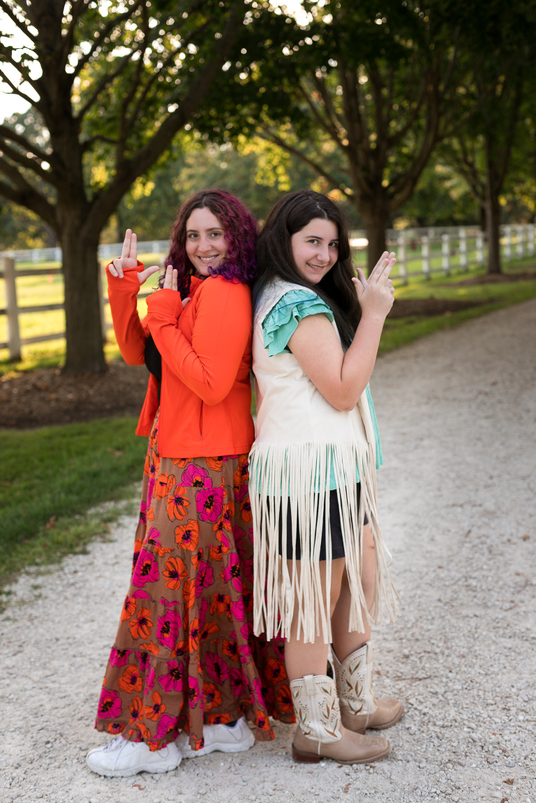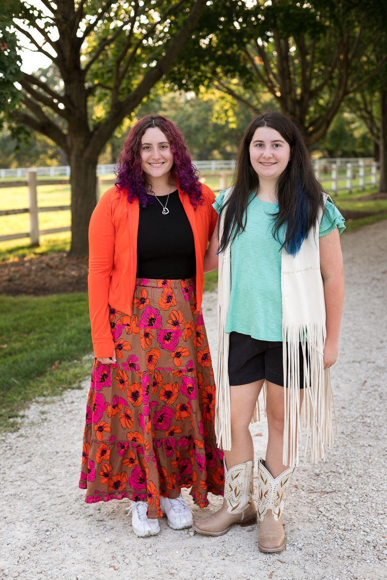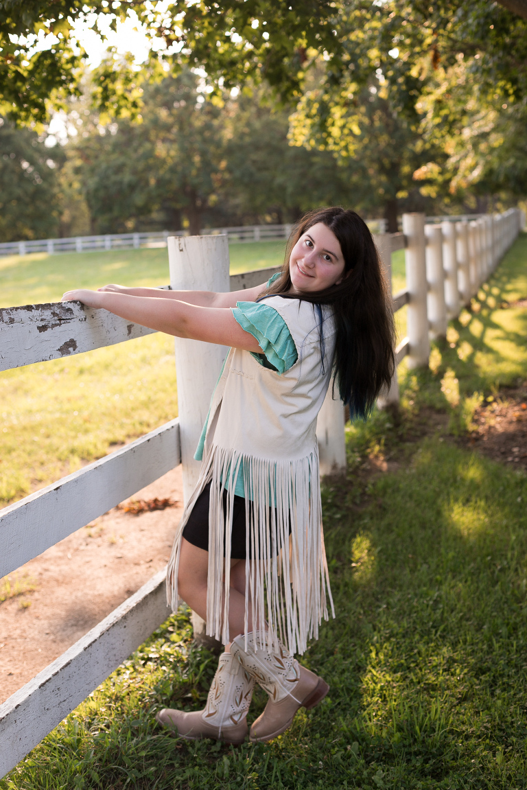 For a girl who LOVES horses, the Danada Equestrian Center in Wheaton was the perfect place to take a few photos. It was fun roaming around the grounds and barn. This natural beauty would be around horses every day, if she could. Love, love, love her fringed vest! And… love that her big sis was there too for some sister/sister photos. 🙂