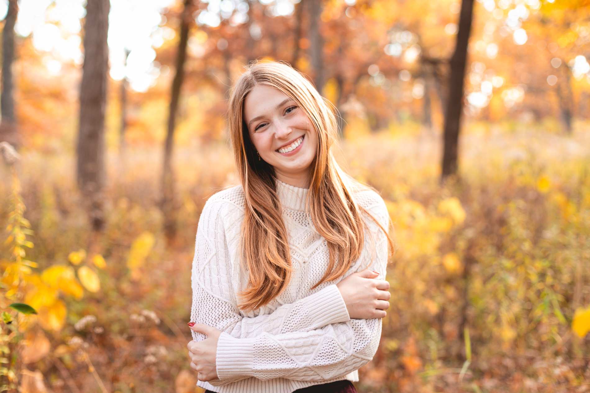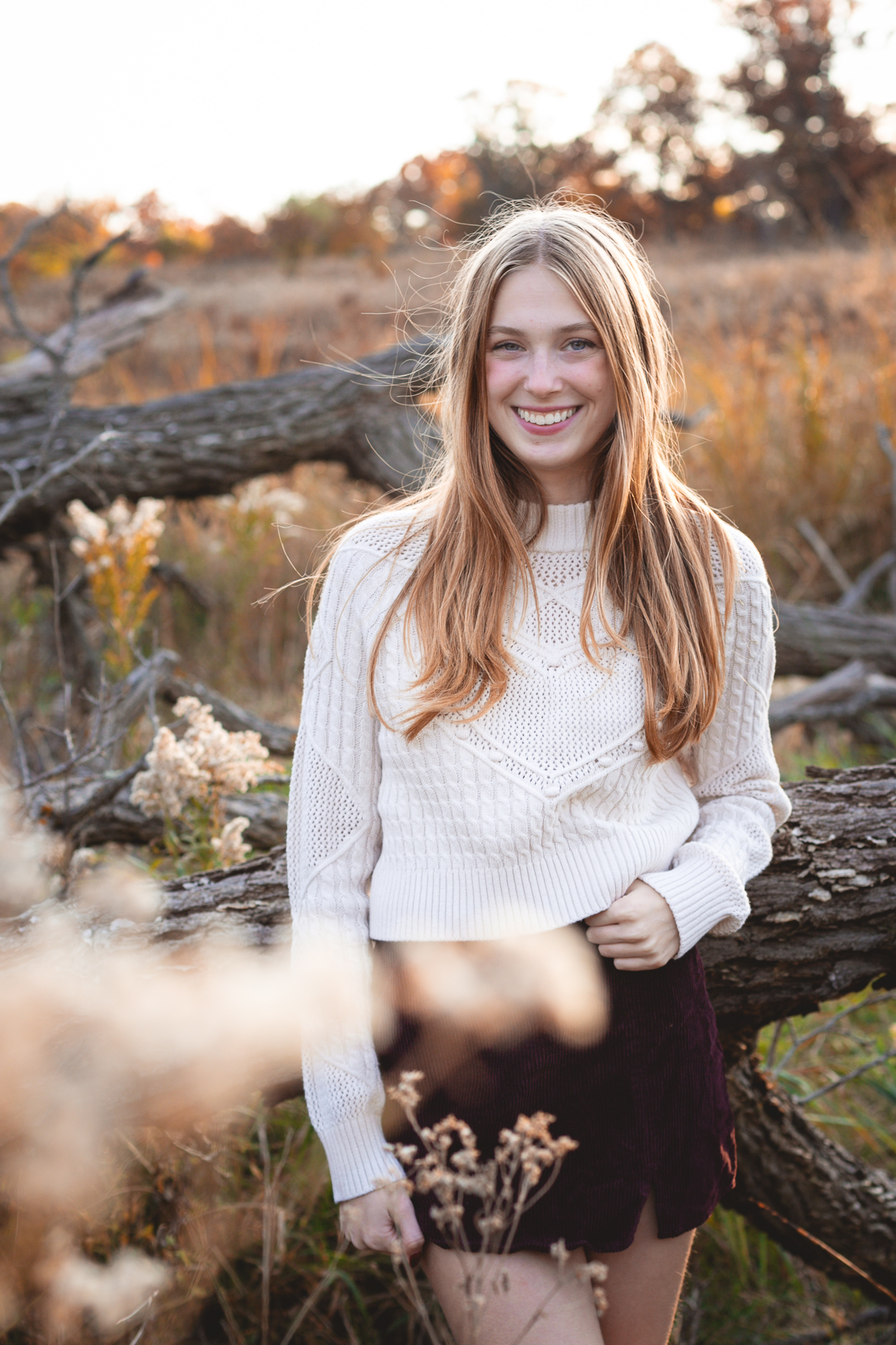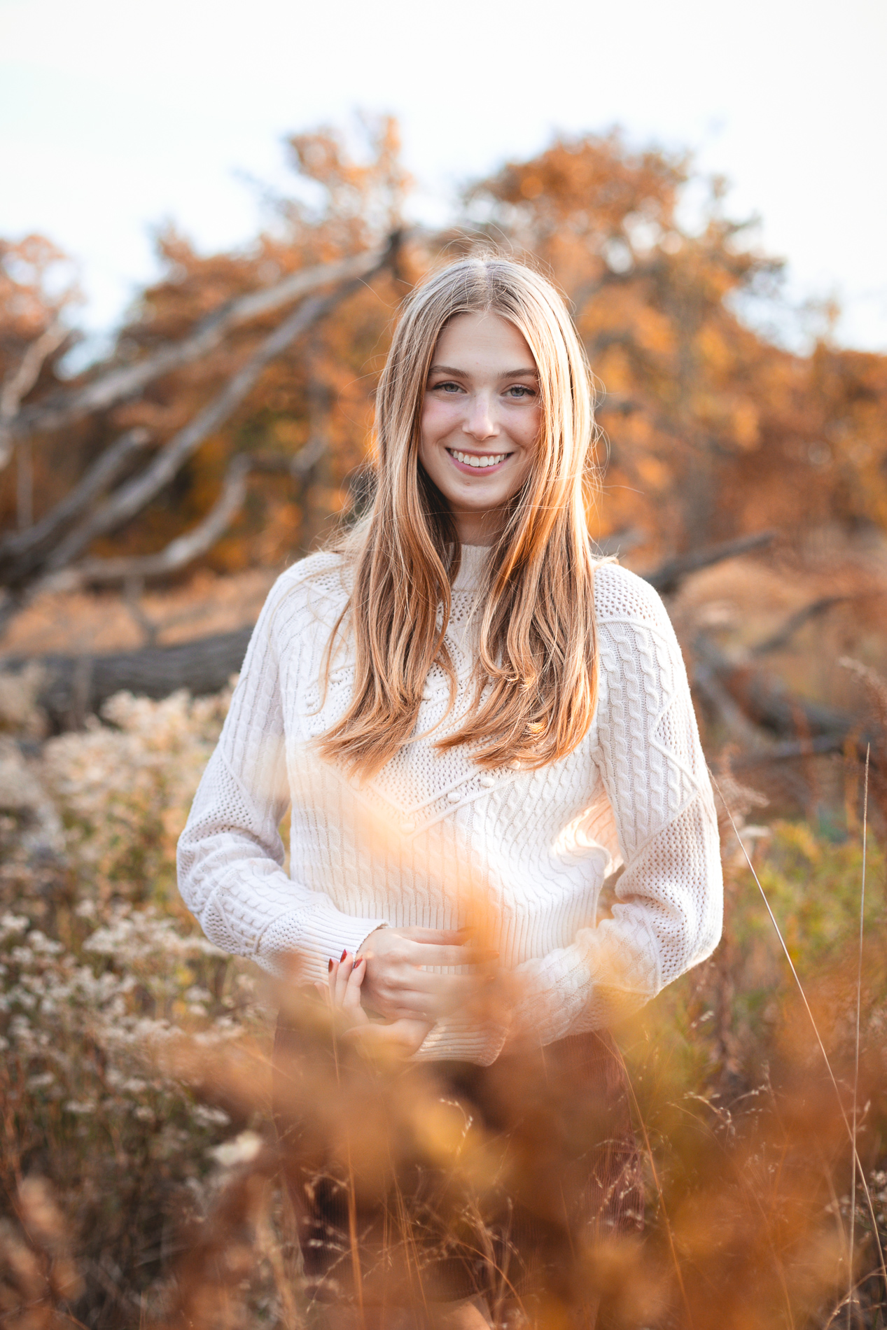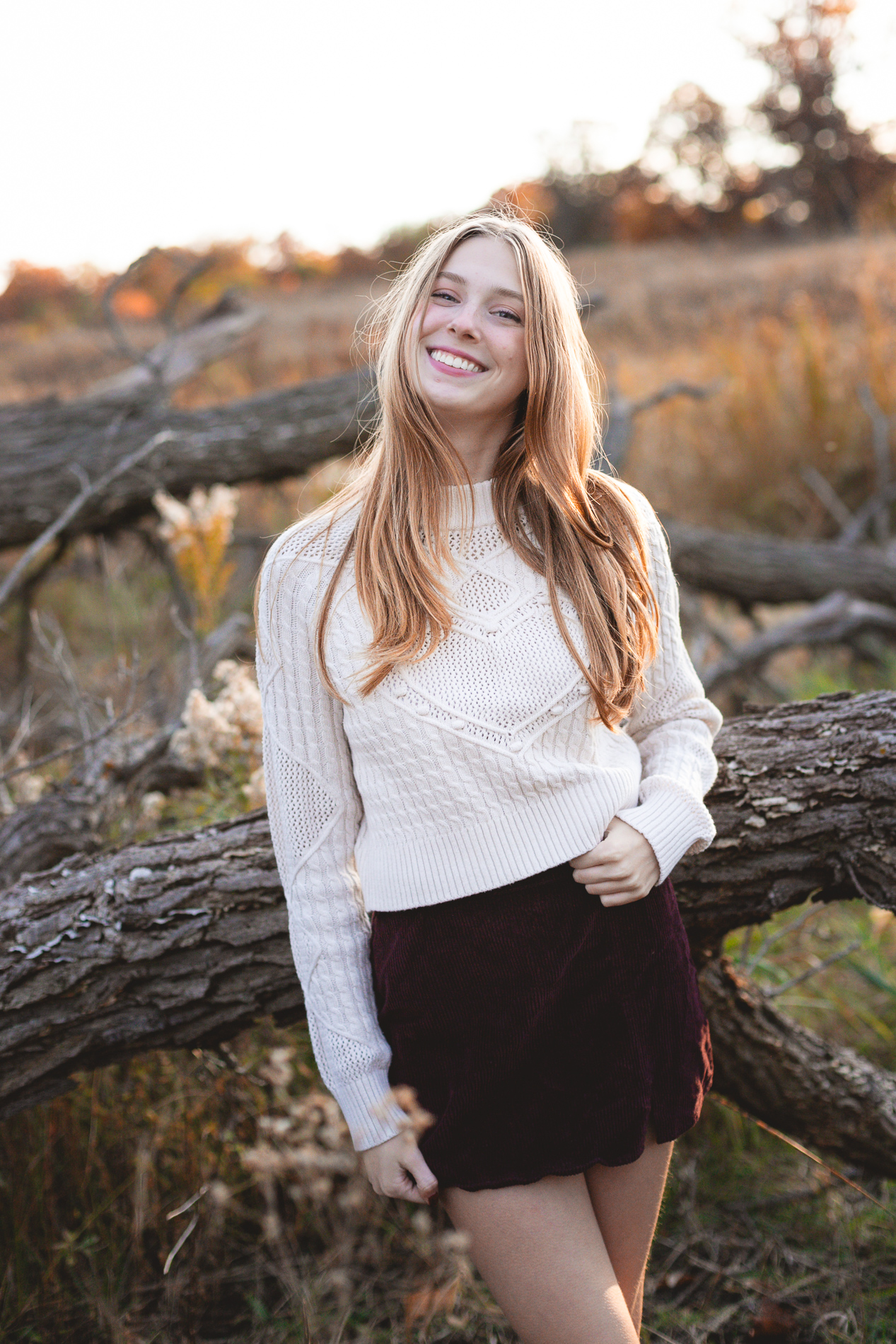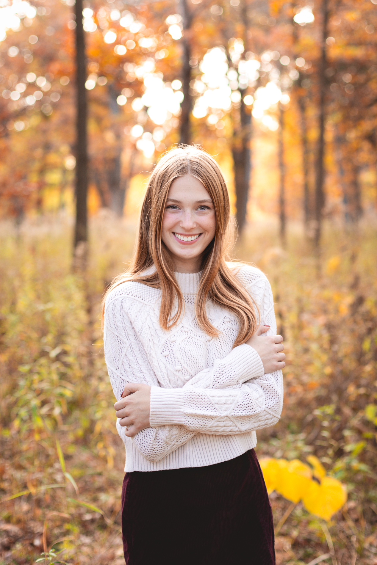 The glorious color of fall. Add in the soft light of an October sunset and you have the recipe for some gorgeous photos! Our senior photo shoot series with this beauty continues from fields of flowers and sandy beaches to a forest of fallen leaves.