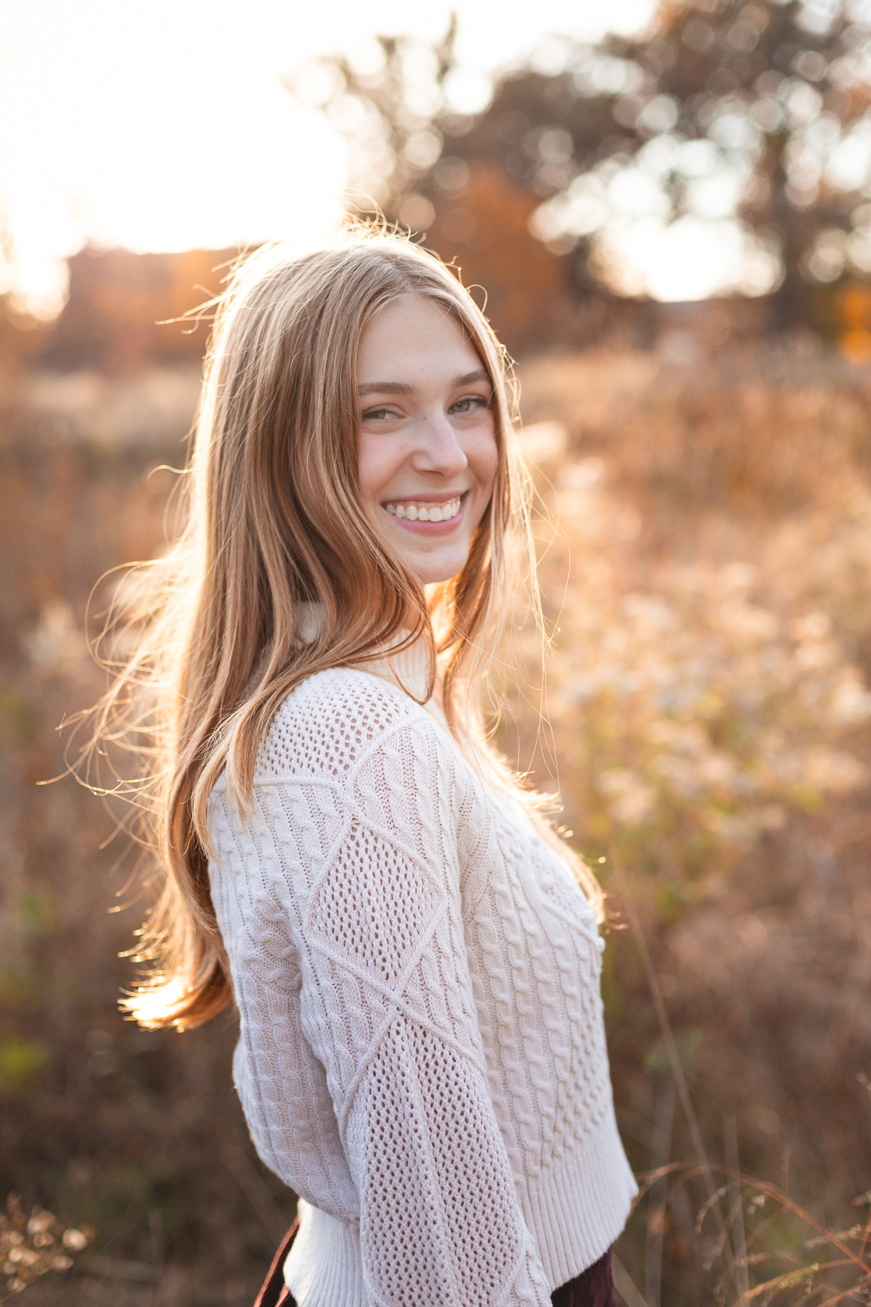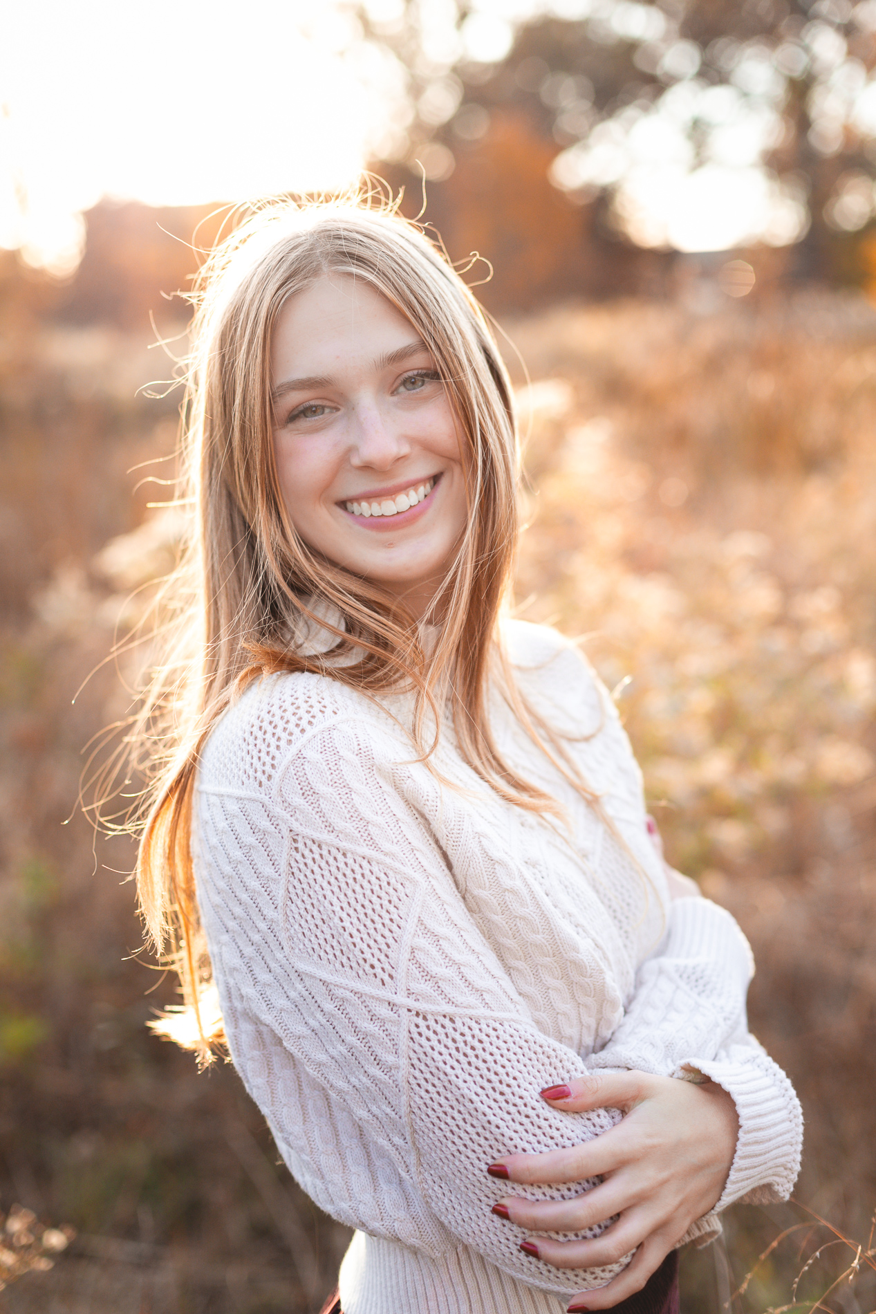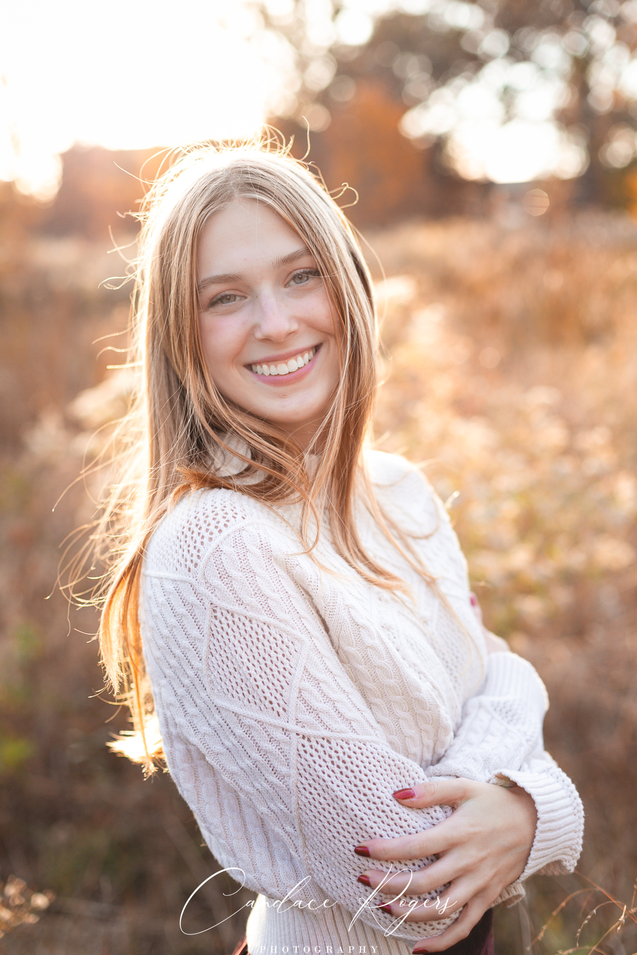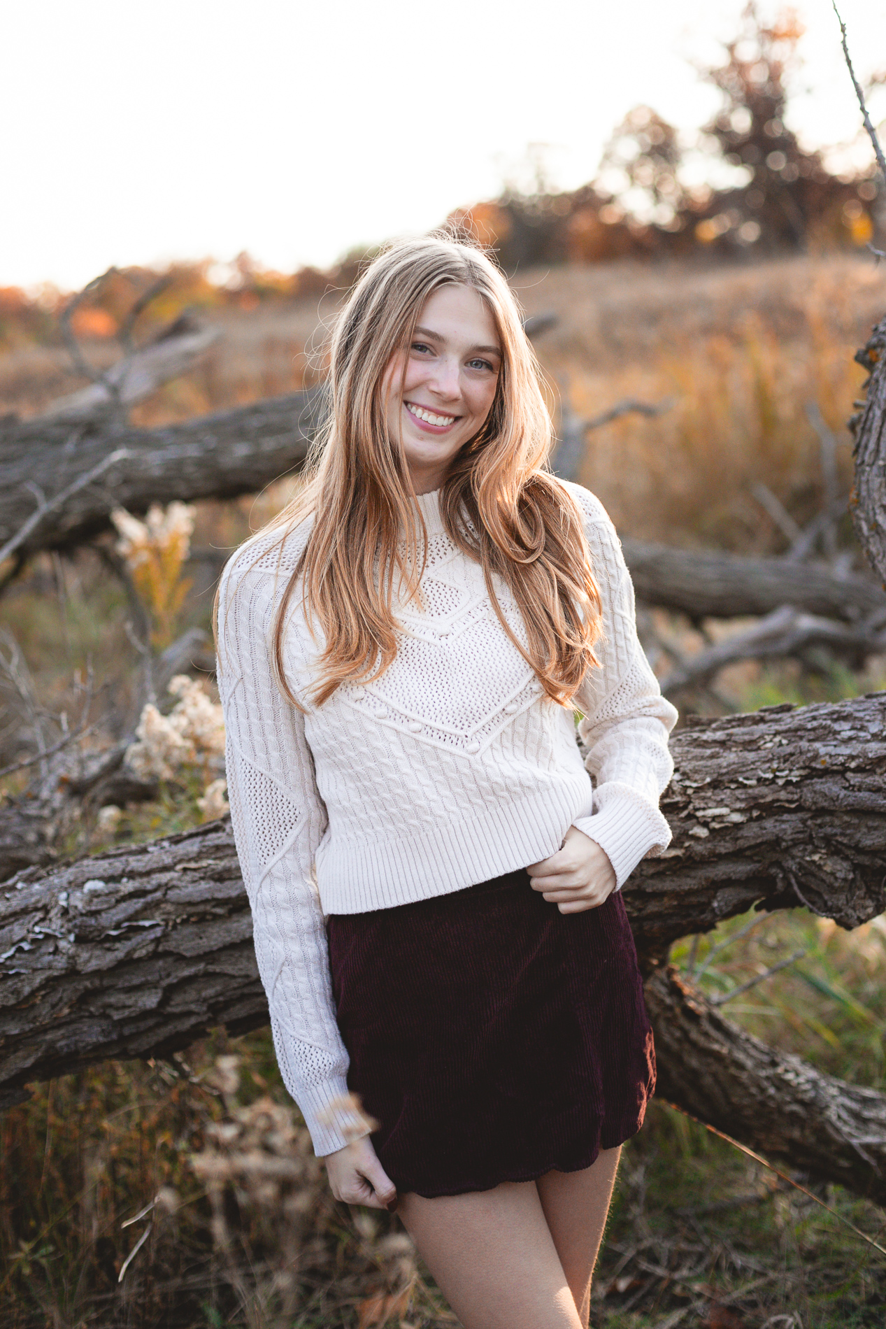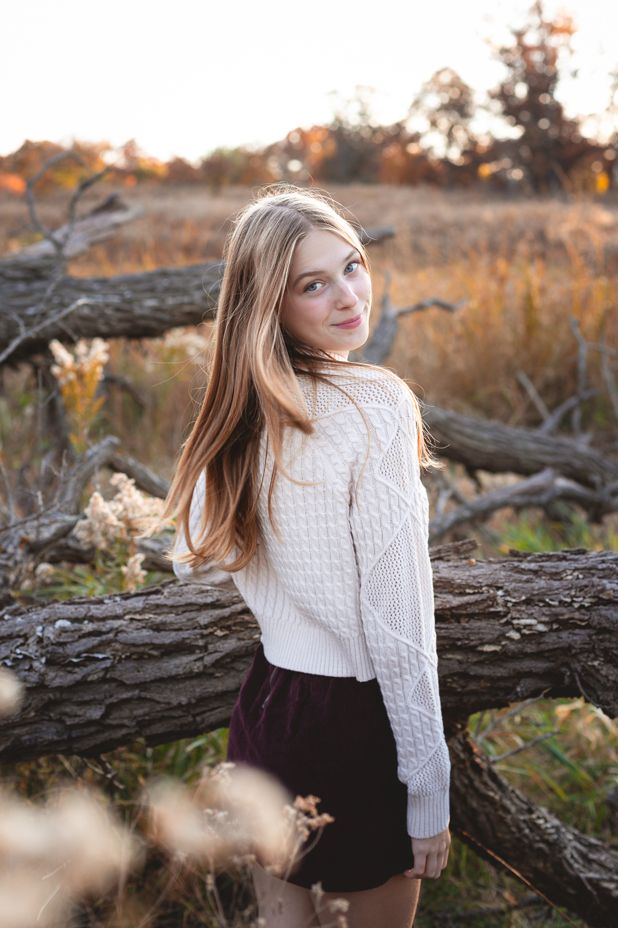 The glorious color of fall. Add in the soft light of an October sunset and you have the recipe for some gorgeous photos! Our senior photo shoot series with this beauty continues from fields of flowers and sandy beaches to a forest of fallen leaves.