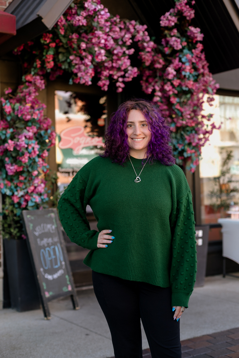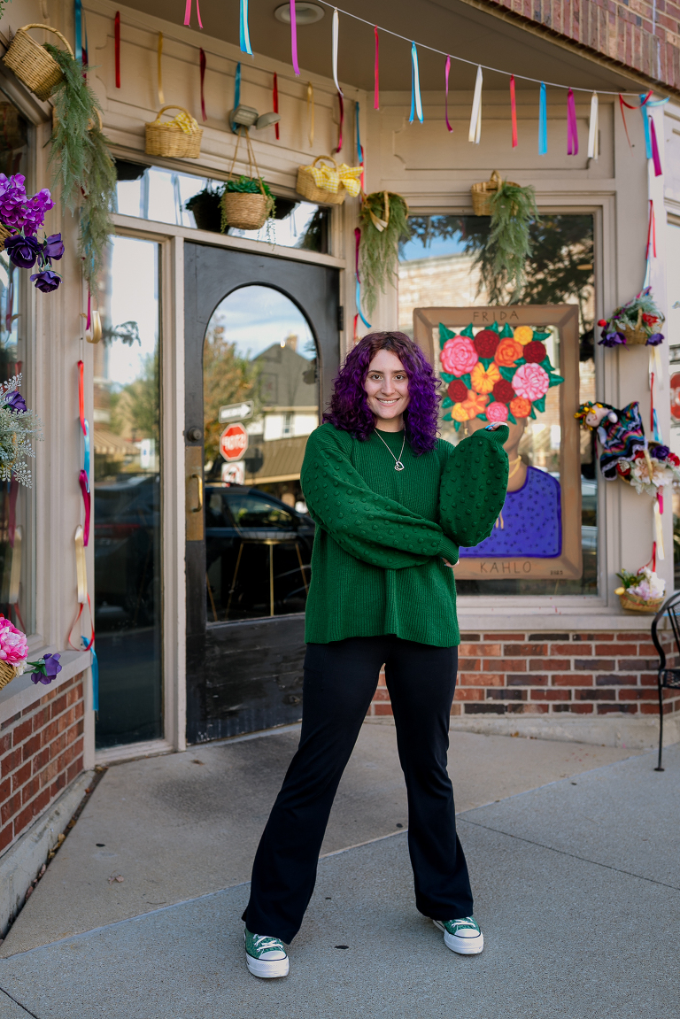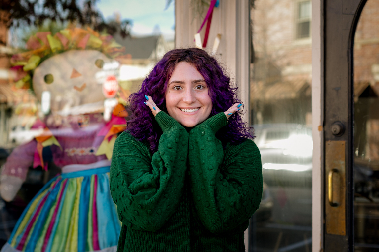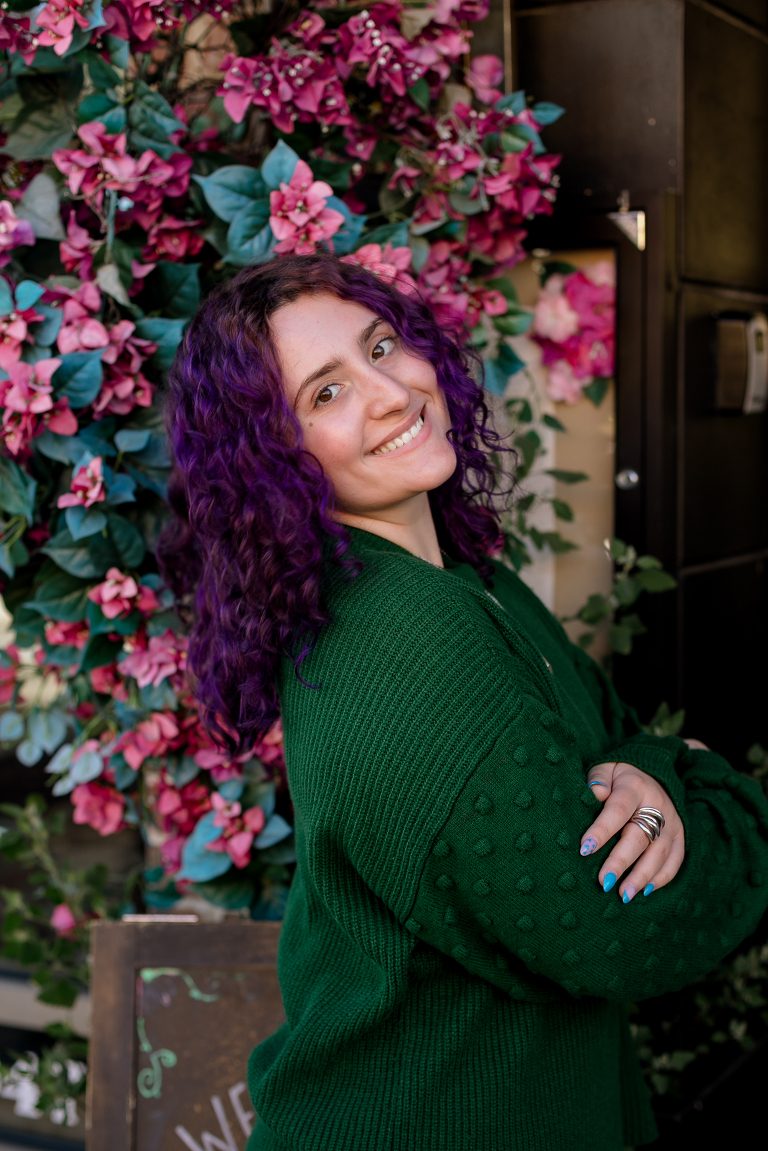 The assignment was to find color. We found it, nearly everywhere! I had such a fun afternoon strolling around downtown Wheaton with this gorgeous high school senior and her family and friends. From the storefronts and flower lined doorways to her fun purple hair and funky shoes, color was all around us.